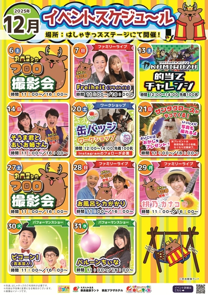 12月20日(土)~2026年1月4日(日)まで、奈良わんぱくランドはしゃきっズは10時~オープンいたします✨